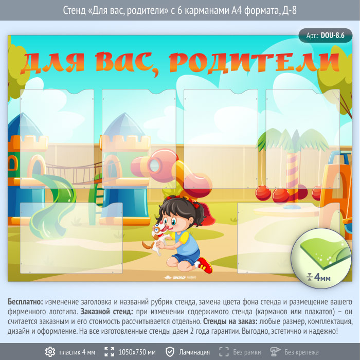 Стенд «Для вас, родители» с 6 карманами А4 формата (DOU-8.6) в Магнитогорске купить