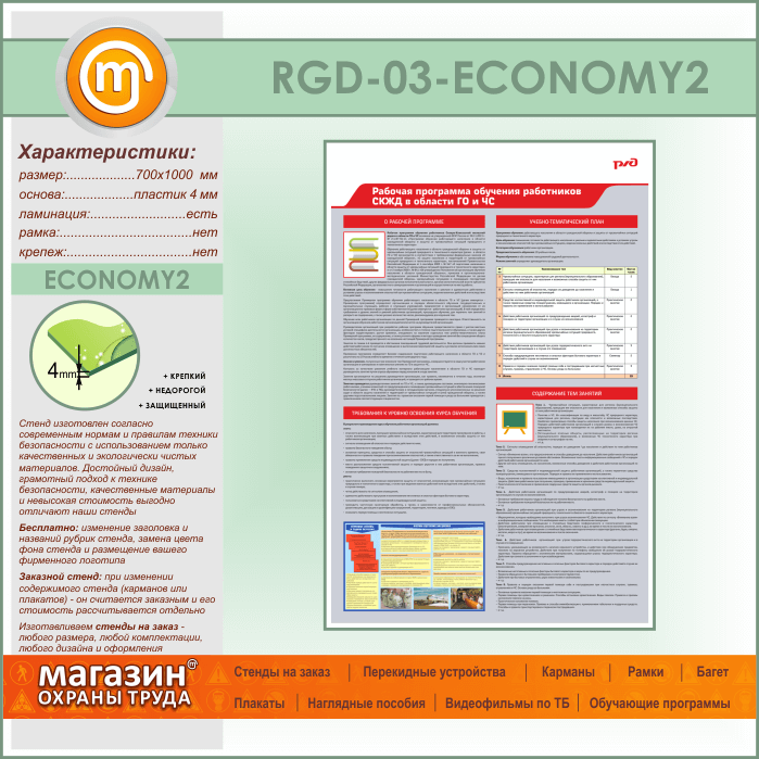 Стенд «Рабочая программа обучения работников СКЖД в области ГО и ЧС» (RGD-03-ECONOMY2) в Магнитогорске купить