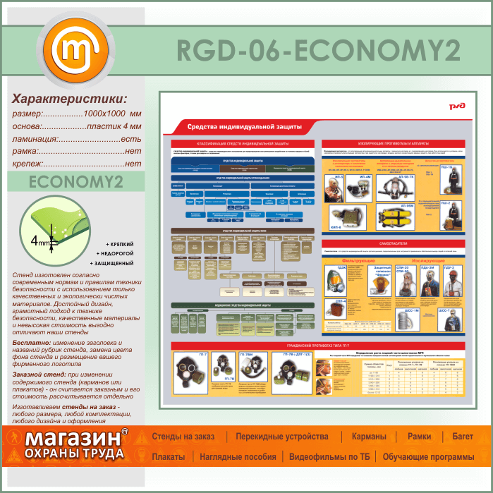Стенд «Средства индивидуальной защиты» (RGD-06-ECONOMY2) в Магнитогорске купить