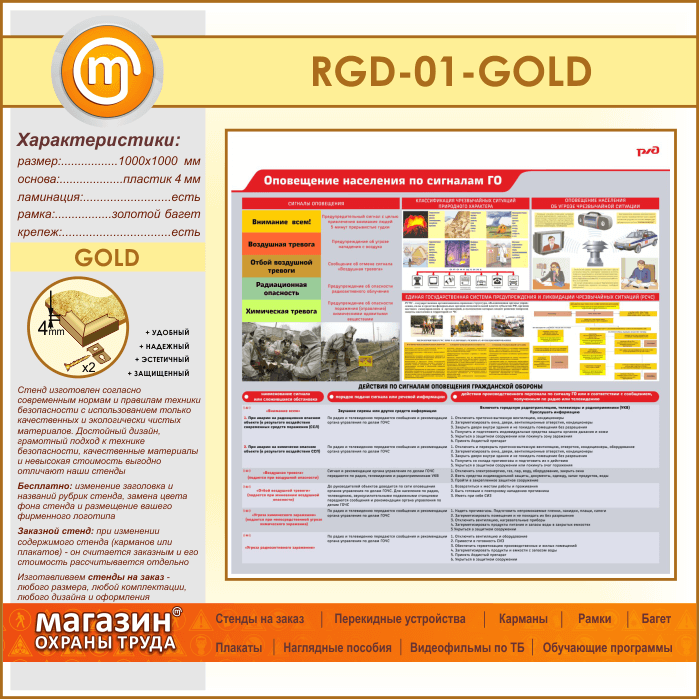 Стенд «Оповещение населения по сигналам ГО» (RGD-01-GOLD) в Магнитогорске купить