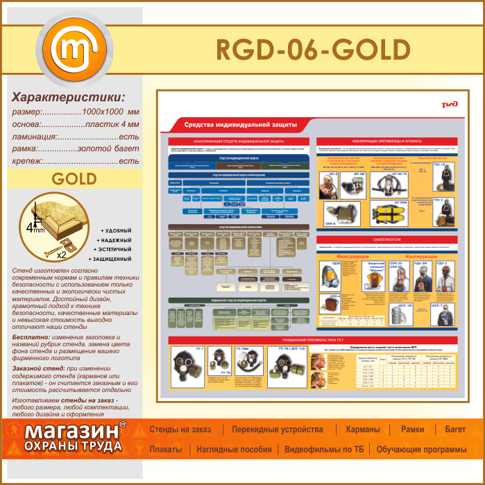 Стенд «Средства индивидуальной защиты» (RGD-06-GOLD) в Магнитогорске купить