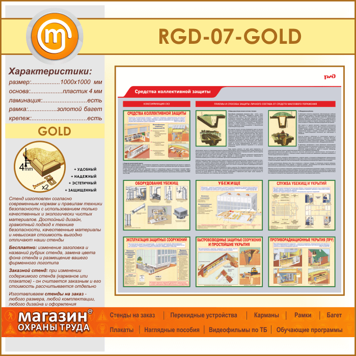 Стенд «Средства коллективной защиты» (RGD-07-GOLD) в Магнитогорске купить