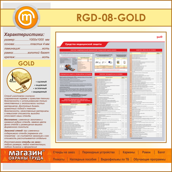 Стенд «Средства медицинской защиты» (RGD-08-GOLD) в Магнитогорске купить