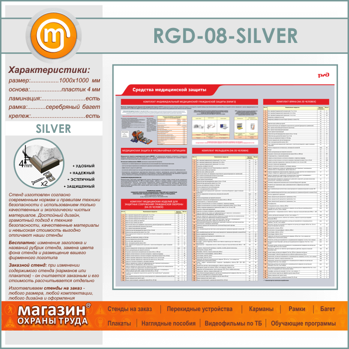 Стенд «Средства медицинской защиты» (RGD-08-SILVER) в Магнитогорске купить