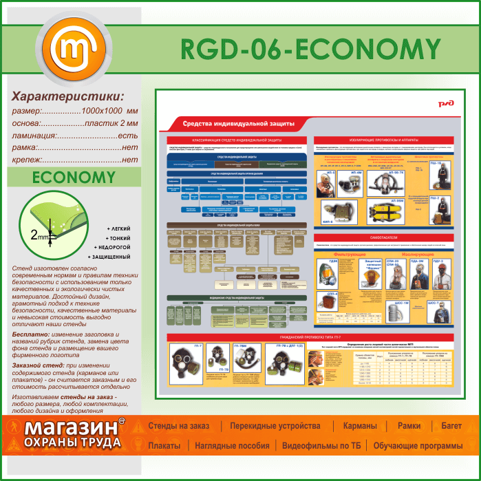 Стенд «Средства индивидуальной защиты» (RGD-06-ECONOMY) в Магнитогорске купить