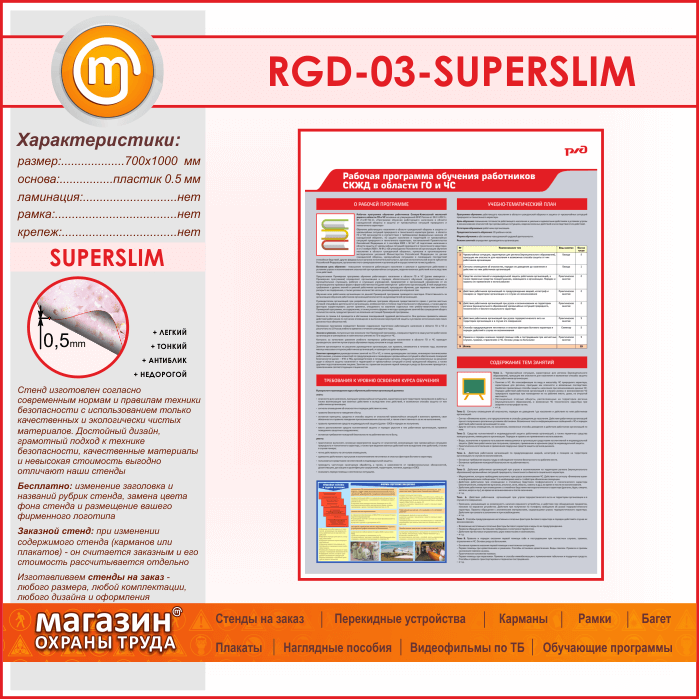 Стенд «Рабочая программа обучения работников СКЖД в области ГО и ЧС» (RGD-03-SUPERSLIM) в Магнитогорске купить