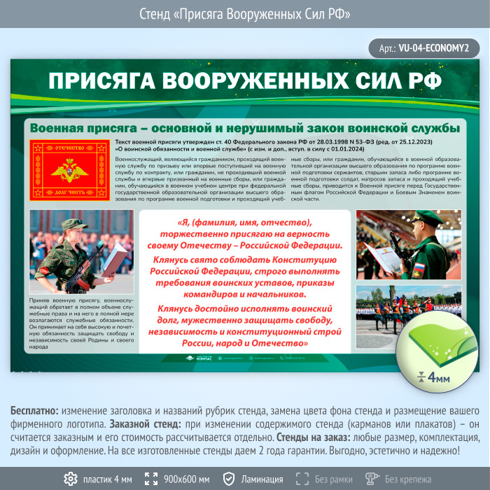 Стенд «Присяга Вооруженных Сил РФ» (VU-04-ECONOMY2) в Магнитогорске купить
