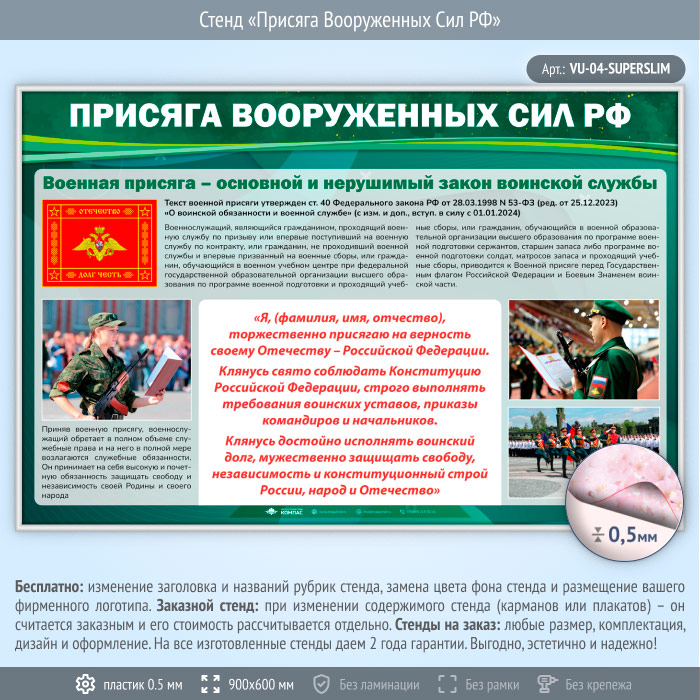 Стенд «Присяга Вооруженных Сил РФ» (VU-04-SUPERSLIM) в Магнитогорске купить