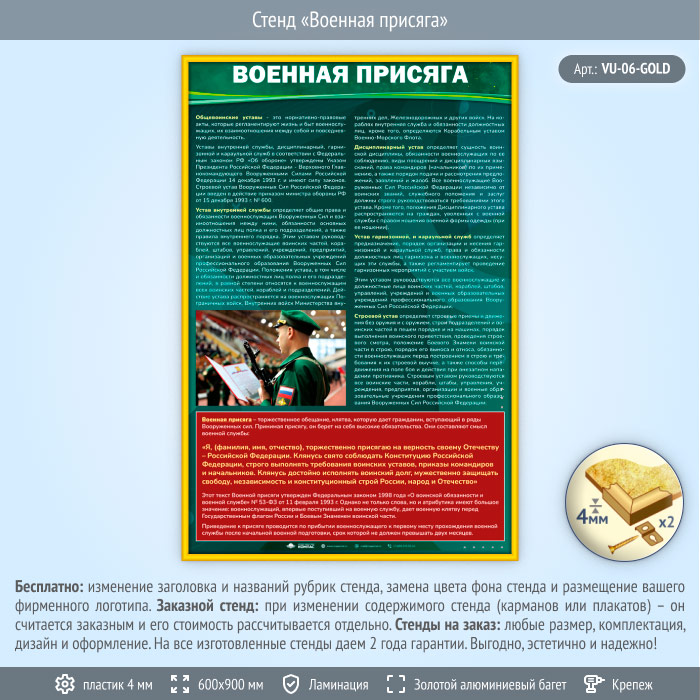 Стенд «Военная присяга» (VU-06-GOLD) в Магнитогорске купить