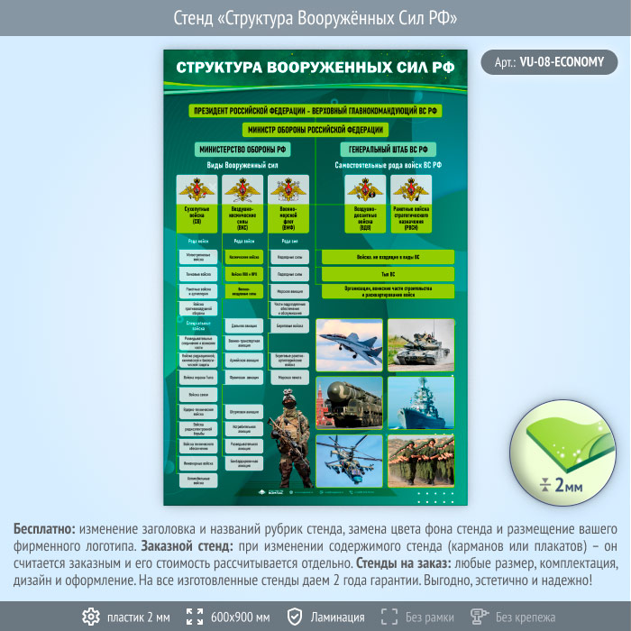 Стенд «Структура Вооружённых Сил РФ» (VU-08-ECONOMY) в Магнитогорске купить