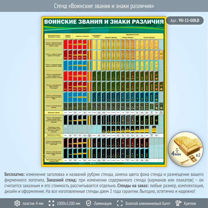 Стенд «Воинские звания и знаки различия» (VU-11-GOLD) в Магнитогорске купить