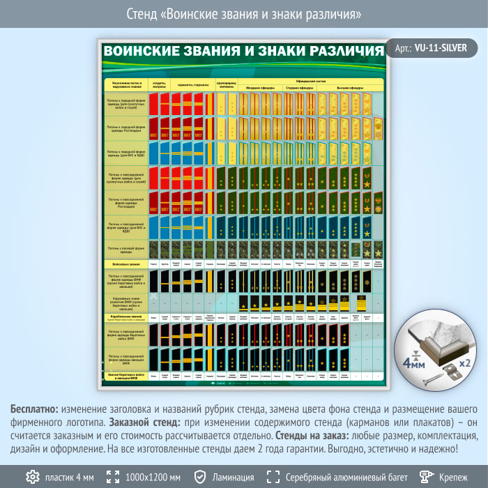 Стенд «Воинские звания и знаки различия» (VU-11-SILVER) в Магнитогорске купить