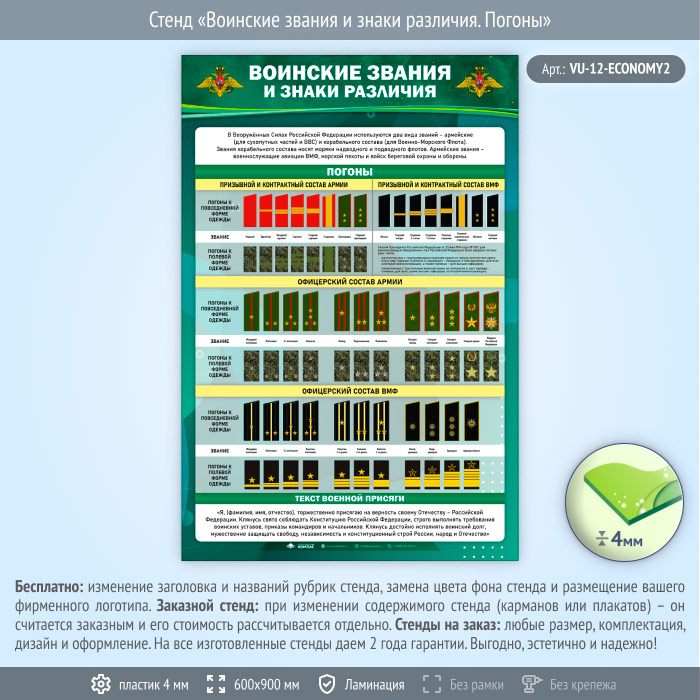Стенд «Воинские звания и знаки различия. Погоны» (VU-12-ECONOMY2) в Магнитогорске купить