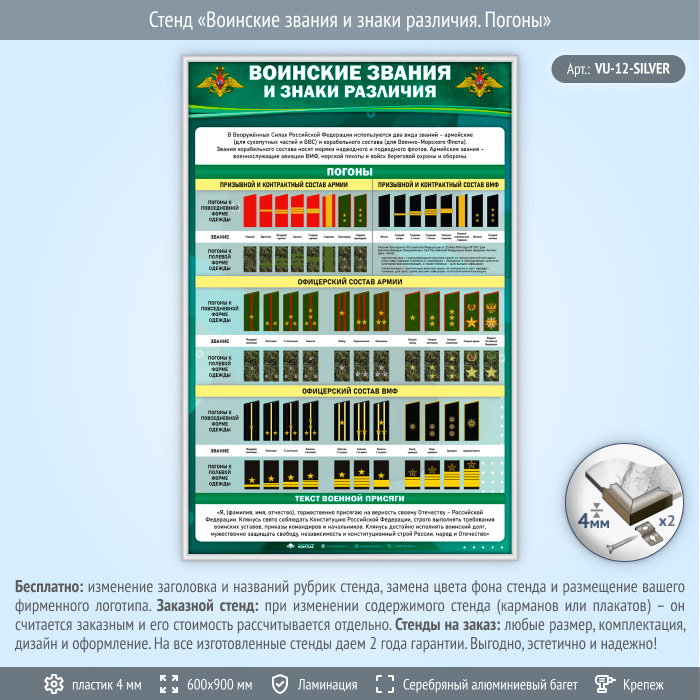 Стенд «Воинские звания и знаки различия. Погоны» (VU-12-SILVER) в Магнитогорске купить