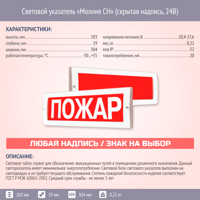 Световой указатель Молния СН (скрытая надпись, 24В) в Магнитогорске купить