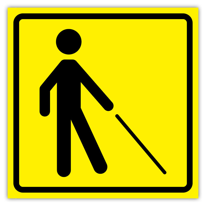 Визуальный предупреждающий знак «Уступите дорогу человеку с белой тростью», ДС77 (пластик 2 мм, 200х200 мм) в Магнитогорске купить