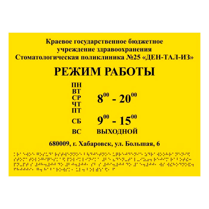 Тактильная вывеска с дублированием азбукой Брайля, ДС12 (полистирол 3 мм, 400х300 мм) в Магнитогорске купить