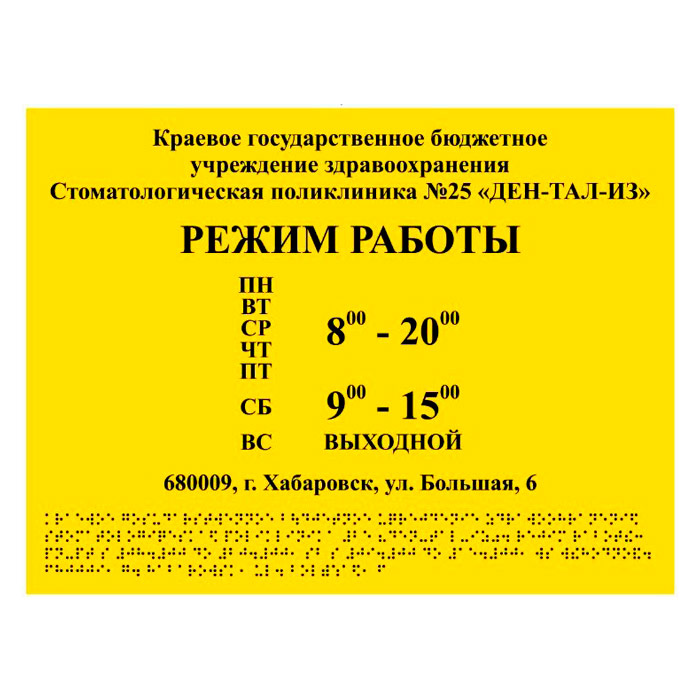Тактильная вывеска с дублированием азбукой Брайля, ДС10 (полистирол 3 мм, 600х500 мм) в Магнитогорске купить