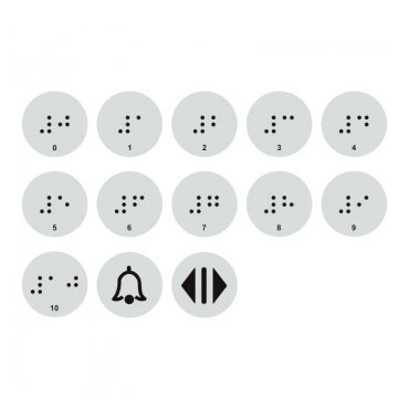Тактильные наклейки для кнопок лифта с 0 по 10 этаж (набор), ДС95 (пленка, 20х20 мм, серебристый) в Магнитогорске купить