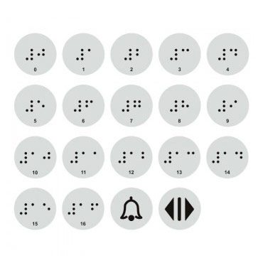 Тактильные наклейки для кнопок лифта с 0 по 16 этаж (набор) , ДС96 (пленка, 20х20 мм, серебристый) в Магнитогорске купить