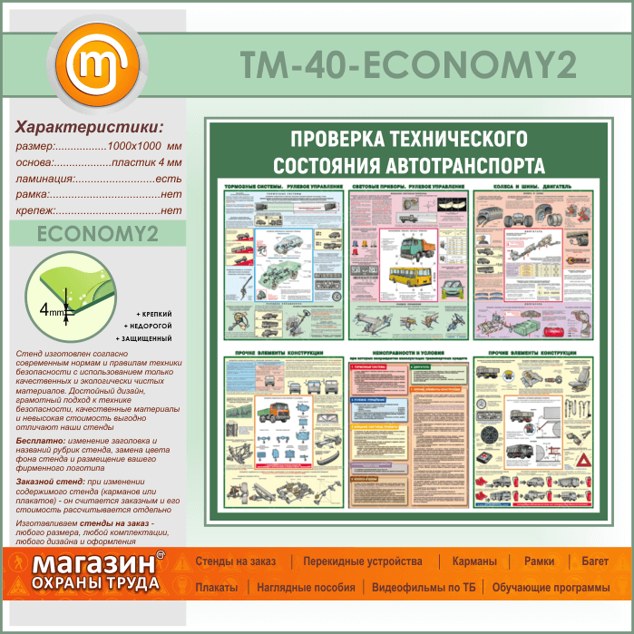 Стенд «Проверка технического состояния автотранспорта» (TM-40-ECONOMY2) в Магнитогорске купить