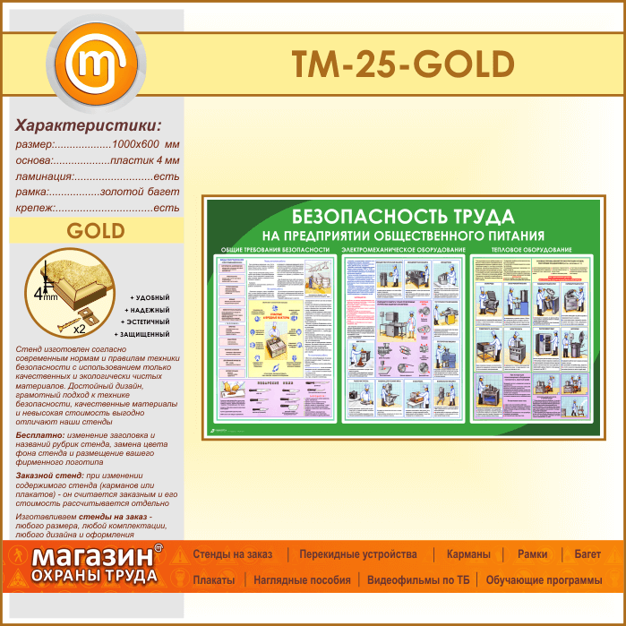 Стенд «Безопасность труда на предприятиях общественного питания» (TM-25-GOLD) в Магнитогорске купить