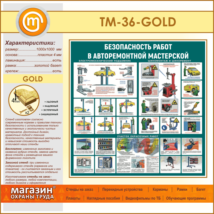 Стенд «Безопасность работ в авторемонтной мастерской» (TM-36-GOLD) в Магнитогорске купить
