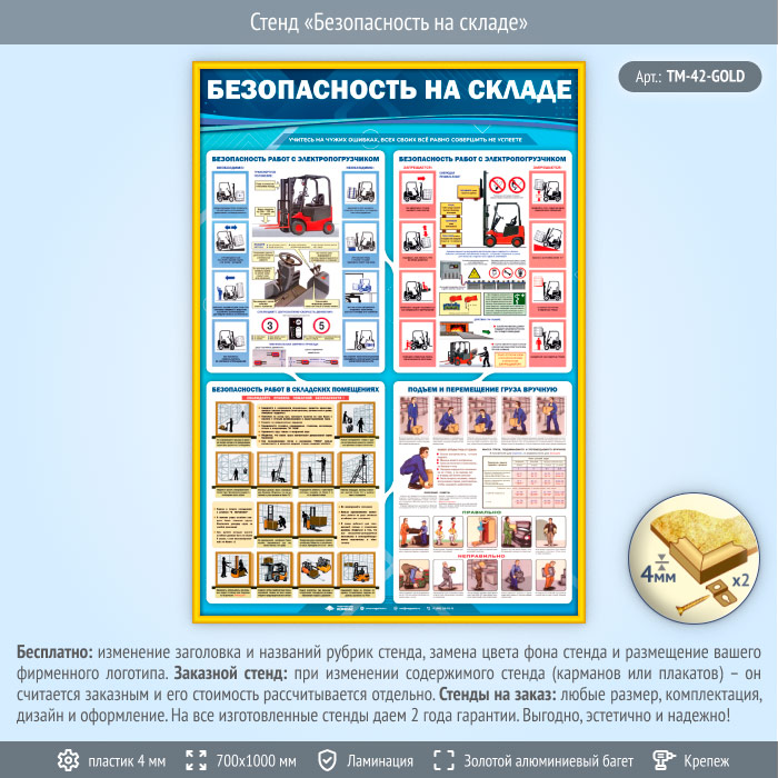 Стенд «Безопасность на складе» (TM-42-GOLD) в Магнитогорске купить