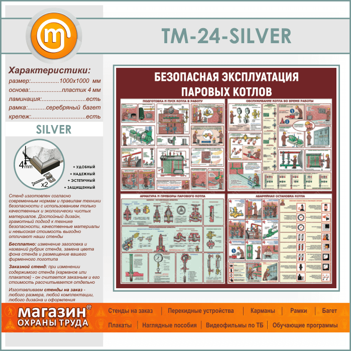 Стенд «Безопасная эксплуатация паровых котлов» (TM-24-SILVER) в Магнитогорске купить