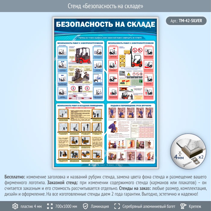 Стенд «Безопасность на складе» (TM-42-SILVER) в Магнитогорске купить