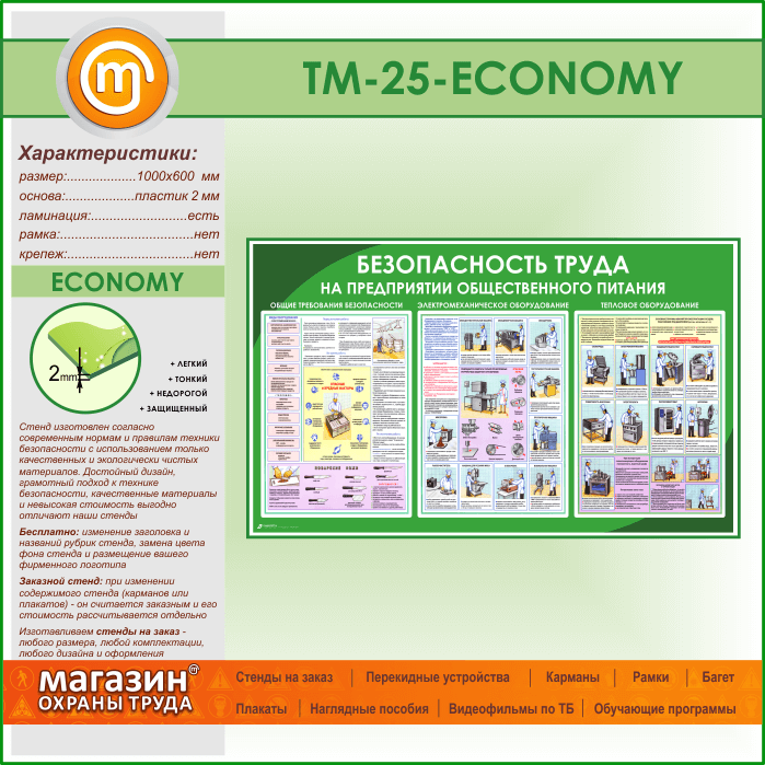Стенд «Безопасность труда на предприятиях общественного питания» (TM-25-ECONOMY) в Магнитогорске купить