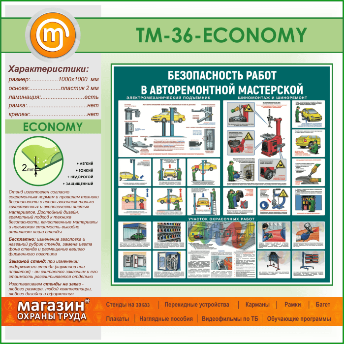 Стенд «Безопасность работ в авторемонтной мастерской» (TM-36-ECONOMY) в Магнитогорске купить