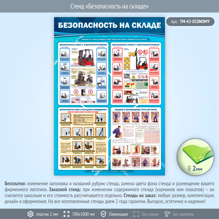 Стенд «Безопасность на складе» (TM-42-ECONOMY) в Магнитогорске купить