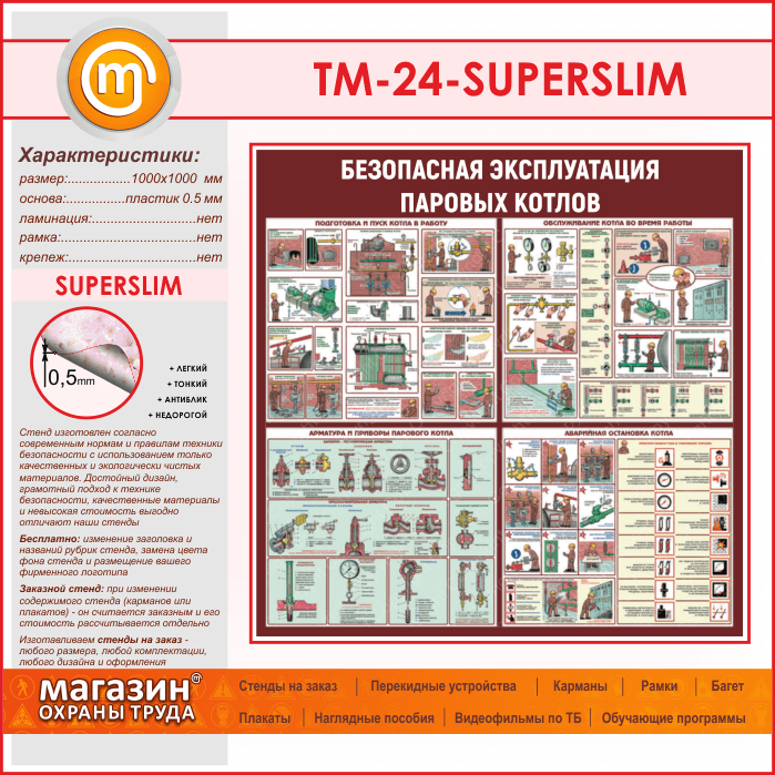 Стенд «Безопасная эксплуатация паровых котлов» (TM-24-SUPERSLIM) в Магнитогорске купить