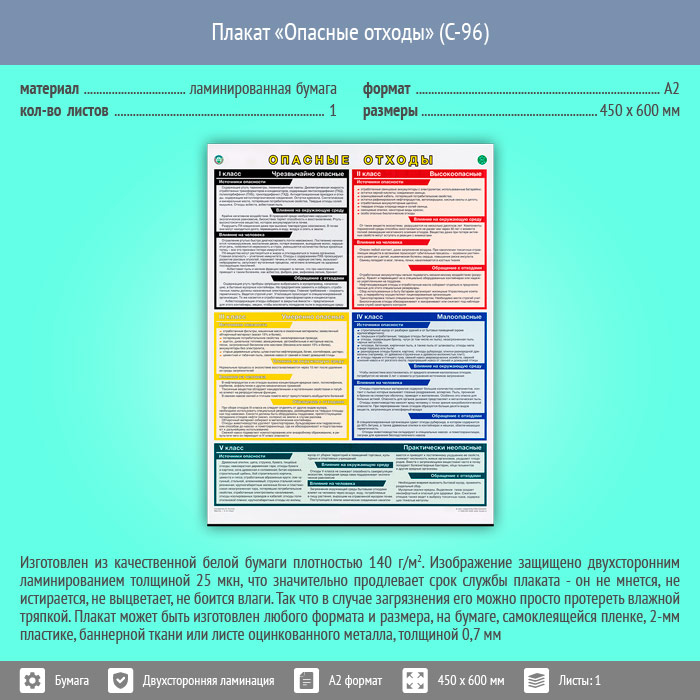 Плакат «Опасные отходы» (С-96, ламинированная бумага, А2, 1 лист) в Магнитогорске купить