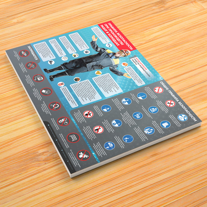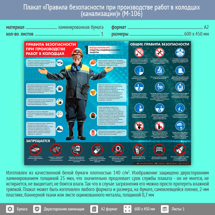 Плакат «Правила безопасности при производстве работ в колодцах (канализации)» (М-106, ламинированная бумага, А2, 1 лист) в Магнитогорске купить