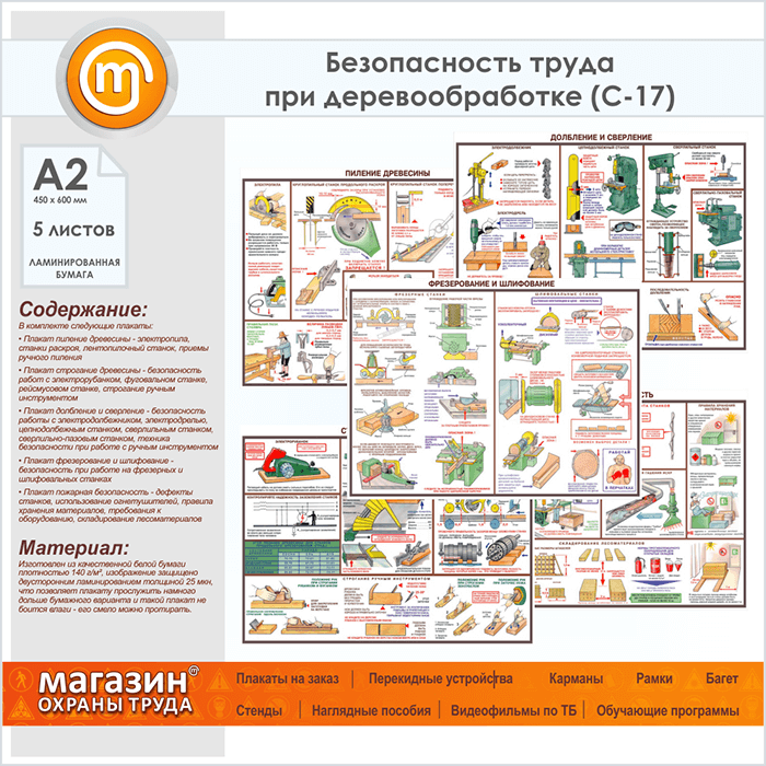 Плакаты «Безопасность труда при деревообработке» (С-17, ламинированная бумага, А2, 5 листов) в Магнитогорске купить