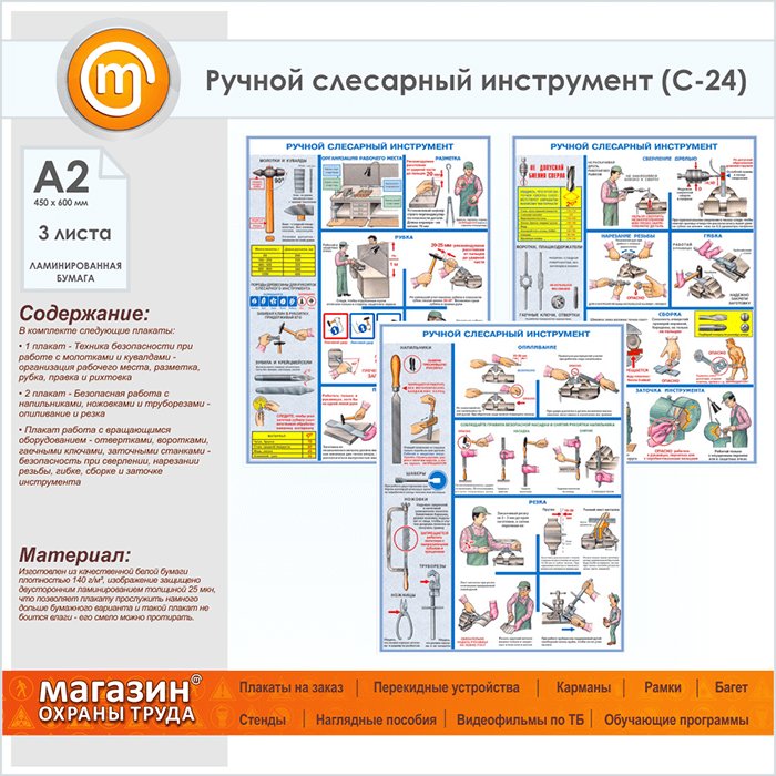 Плакаты «Ручной слесарный инструмент» (С-24, ламинированная бумага, А2, 3 листа) в Магнитогорске купить