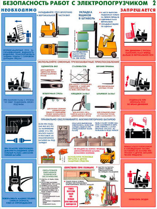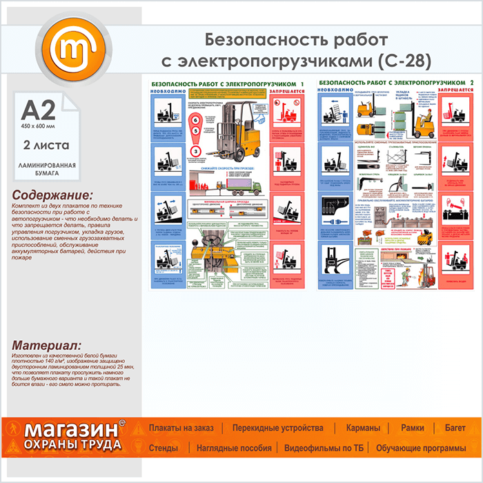 Плакаты «Безопасность работ с электропогрузчиками» (С-28, ламинированная бумага, А2, 2 листа) в Магнитогорске купить