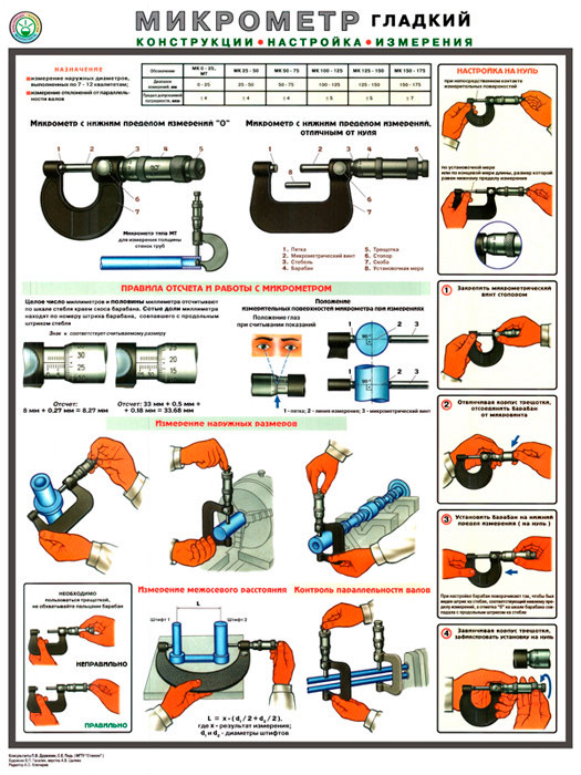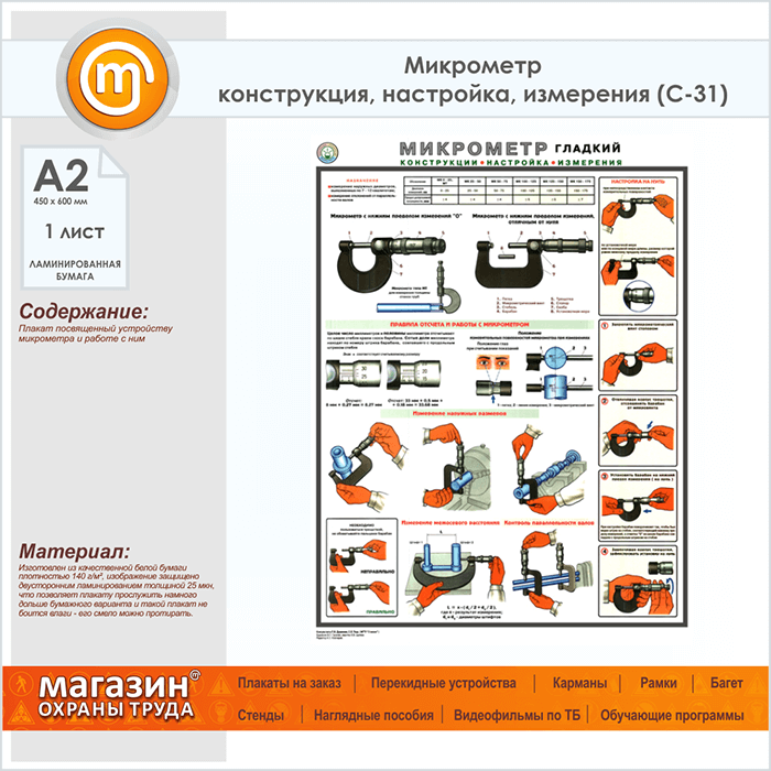 Плакат «Микрометр - конструкция, настройка, измерения» (С-31, ламинированная бумага, А2, 1 лист) в Магнитогорске купить