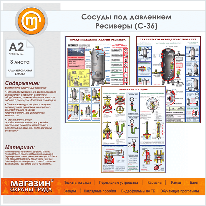 Плакаты «Сосуды под давлением. Ресиверы» (С-36, ламинированная бумага, А2, 3 листа) в Магнитогорске купить