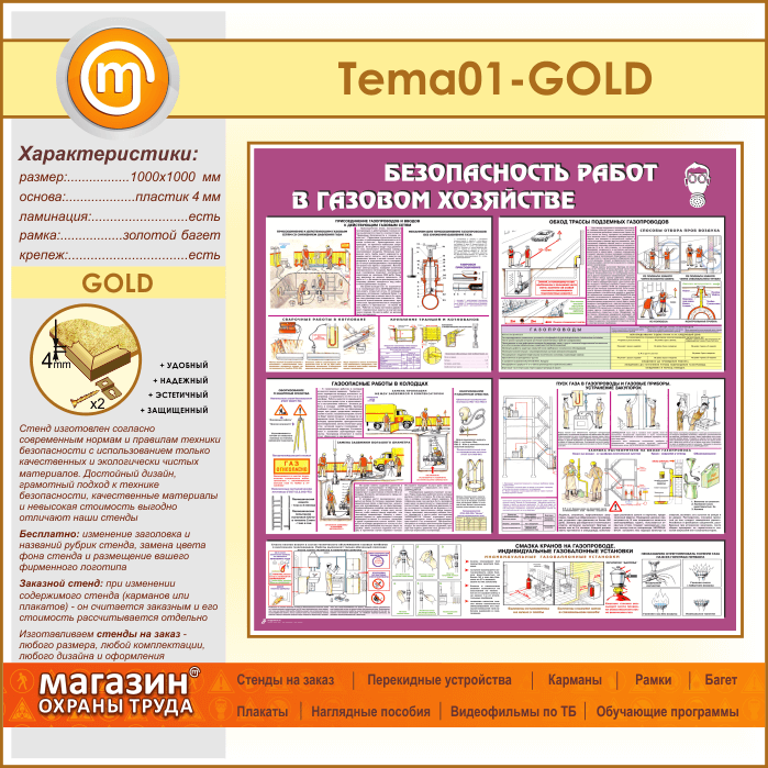 Стенд «Безопасность работ в газовом хозяйстве» (TM-01-GOLD) в Магнитогорске купить