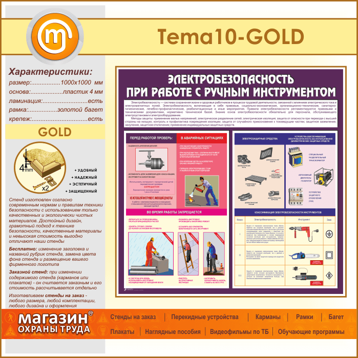 Стенд «Электробезопасность при работе с ручным инструментом» (TM-10-GOLD) в Магнитогорске купить