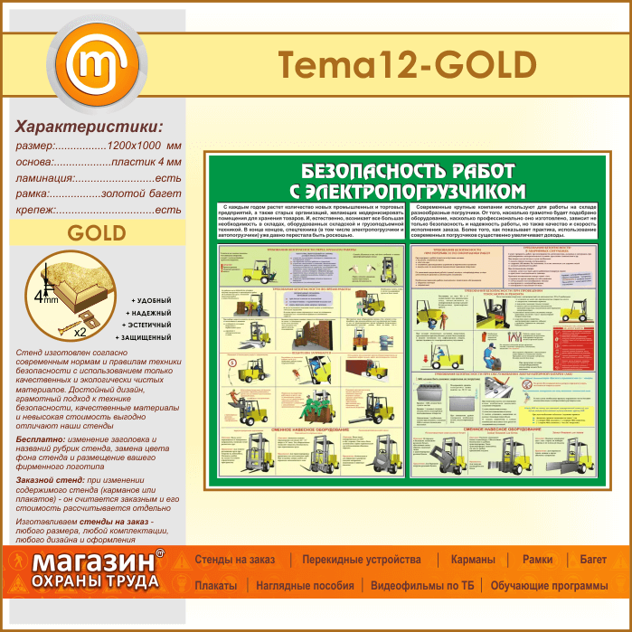 Стенд «Безопасность работ с электропогрузчиком» (TM-12-GOLD) в Магнитогорске купить