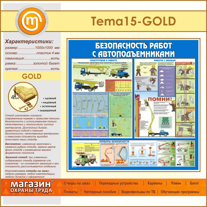 Стенд «Безопасность работ с автоподъемниками» (TM-15-GOLD) в Магнитогорске купить