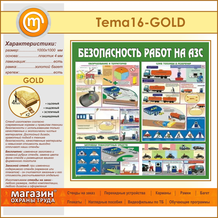 Стенд «Безопасность работ на автозаправочных станциях» (TM-16-GOLD) в Магнитогорске купить