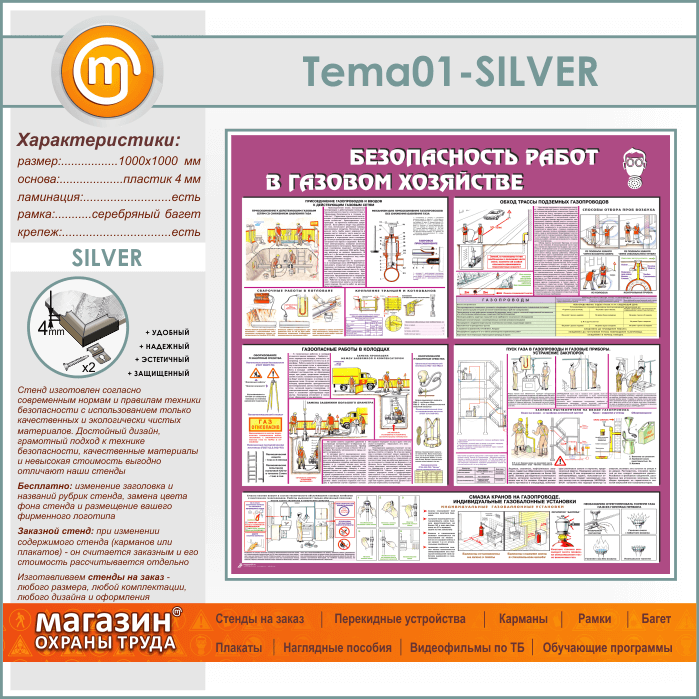 Стенд «Безопасность работ в газовом хозяйстве» (TM-01-SILVER) в Магнитогорске купить