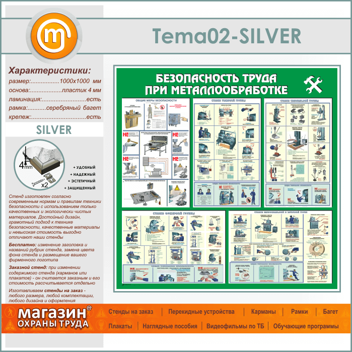 Стенд «Безопасность труда при металлообработке» (TM-02-SILVER) в Магнитогорске купить