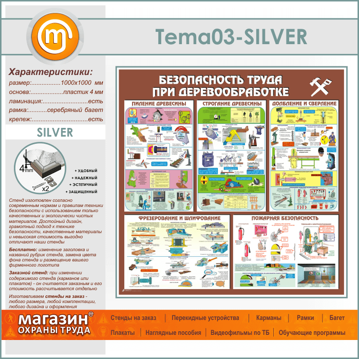 Стенд «Безопасность труда при деревообработке» (TM-03-SILVER) в Магнитогорске купить