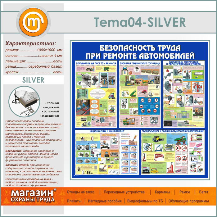 Стенд «Безопасность труда при ремонте автомобилей» (TM-04-SILVER) в Магнитогорске купить
